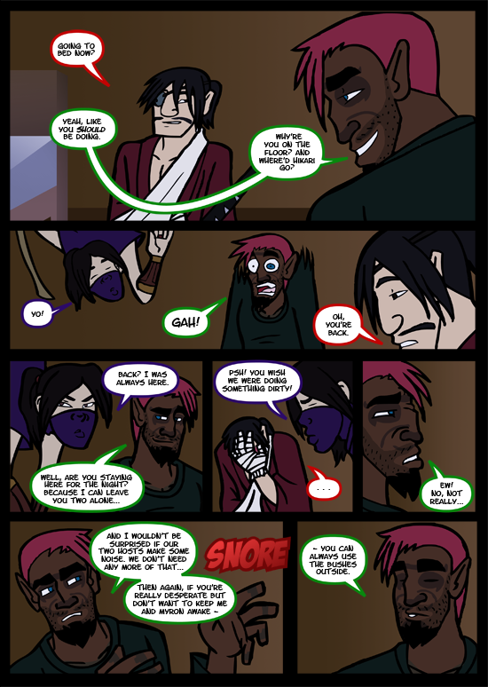 Hikari wasn't originally going to remain hanging on this page. When drawing it, I decided it would be funnier and more Hikari-ish if she did keep dangling. I think I made the right choice.