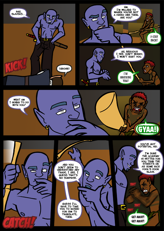 You have no idea how long I've waited for this guy to show up in the comic. He's a very minor, but important character. I love him and his love of irritating people. Too bad he won't be appearing again after this chapter until... Uh... Book IV, I think.