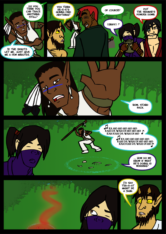 It's not the best ever, but I'm fairly proud of the shaman's forshortened arm in panel three.
