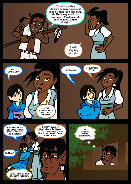 It looks like Kalanu's ready to accept her situation. It's not that she doesn't like watching Mushin - it's more that the added responsibility of looking after a young child for severasl days was unexpected. How good a job do you think she'll do?