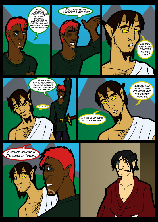 Originally, Myron's stutter was going to occur about every word. I soon realized that it was far too long and annoying to read, so we trimmed it down to a word or two every three sentences or so. To save us the trouble while originally writing these chapters, Carissa and I often left out the stutter in Myron's lines. Problem is, I often forgot to add them in later. That's why they're so sparse at points.