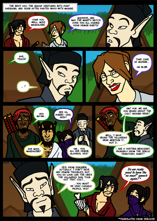 This intro was originally much longer. One joke was Maggie spotting the town before Myron did and Myron getting a bit sulky about it. And---wait. Where did that piece of meat come from? Wait...I don't want to know.