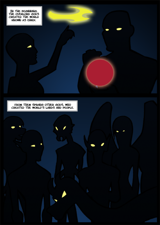 After the cover page, this was quite a quick and easy page to color. You may notice there's a weird mandible creature at the bottom. That's the creator deity for the Ancients, a race exctinct by the time Rune Master's story starts. Note too that there's no Human deity here. That's because Humans were created later by Huerr, a Subagel deity that lost his wings in a fight with an archdemon.