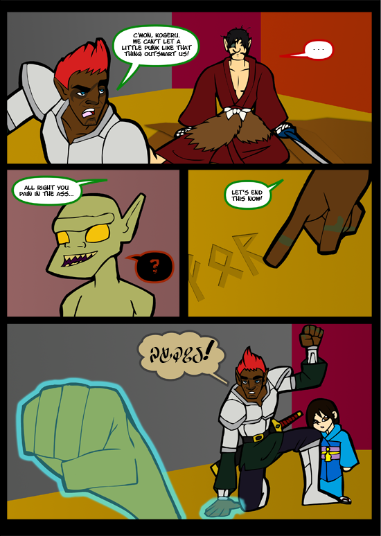 First official use of runes! Now the title makes sense, huh? This might've been the only page where I used the Runic font directly for Diyero's handwritten runes; in later pages, I would write them myself to make it look more imperfect and scribbled; I save the font for carved and printed runes.