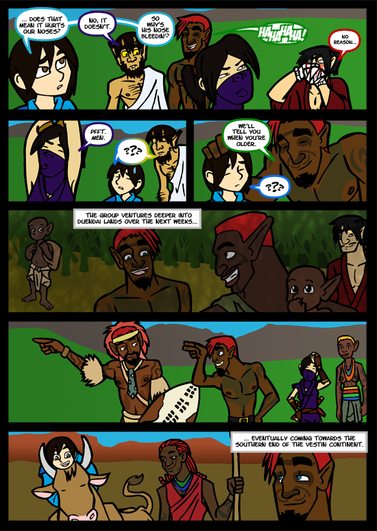 On this page, the group goes through several of these areas - the Mosi jungles in panel 4, the Pili in panel 5, and the Atatu in panel 6.