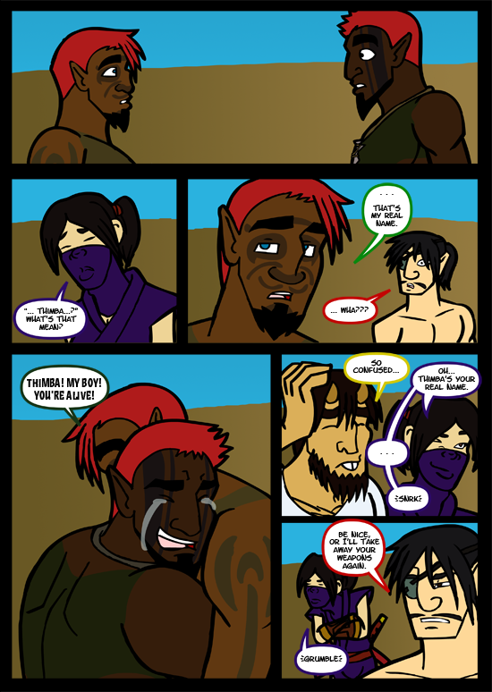 Also: D'aaaw reunion hug. I love it, save for the fact Diyero's dad looks shorter than Diyero, when he's actually two inches taller and just hunched over. Ah well.