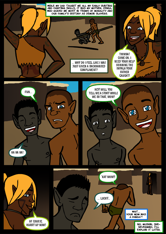 If you've been paying attention to little details, current-day Jabin is wearing Penda's mahaba necklace around his left hand, where his wedding tattoos are. Yes, he's a bit of a closet softy. :P