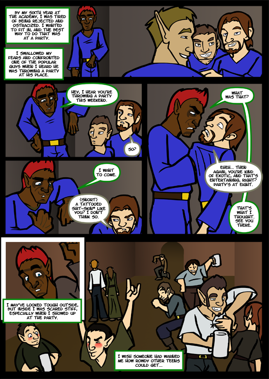 Drunken teenage parties - yup, Ehrdi's got 'em. XD I love the guy schmoozing with the redhead in the lower right corner.