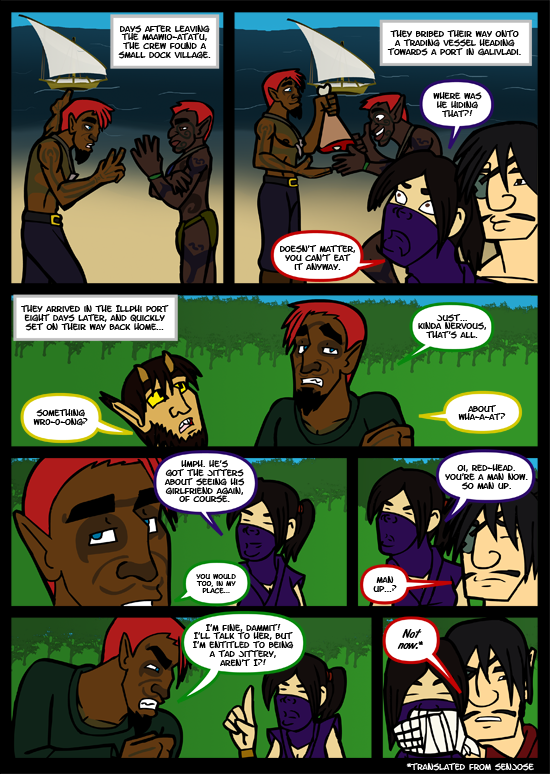 I spent HOURS on the water and fishing boat you see in the first two panels; even did research into some north African fishing boats for inspiration/accuracy. While I'm quite proud with how they came out, I'm a bit sad so much detail was lost after resizing the page for the web. Ah well.