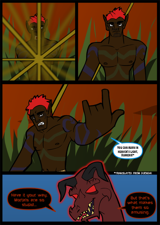 The insulting gesture Zahran is making here is a combination of the Draconic characters "so" and "ske." Soske is short for Sobreskehro which translates as "God trash" This is a reference to the original demons being banshined from Ehrdi into the hells by the Overlord gods.