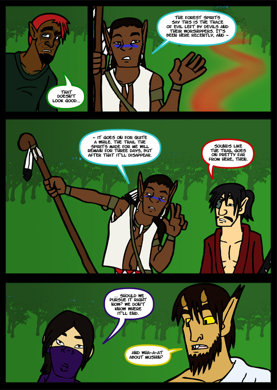 His dramatic posing makes me wish there was time to draw a lot more of the shaman. Ah well. He'll be back in the comic every now and then, as he's a notable townsperson.