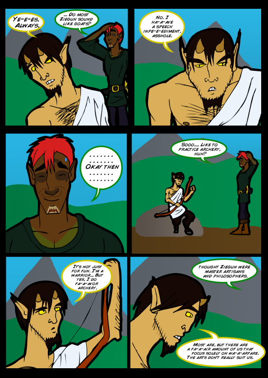 And BAM! there it is. The stuttering joke/running gag is actually one of the reasons I wanted to add a Ziegun into the party. I've always closely associated myself with goats (long story), and I thought it would be fun to mock the old cartoons and comics where goat characters would always stutter in their speech.
