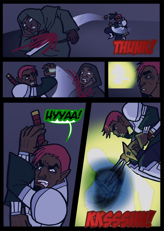 Pages with this little dialogue are few and far between. Also, I'm pretty happy with the "stabbing/energy" effect in the last panel.